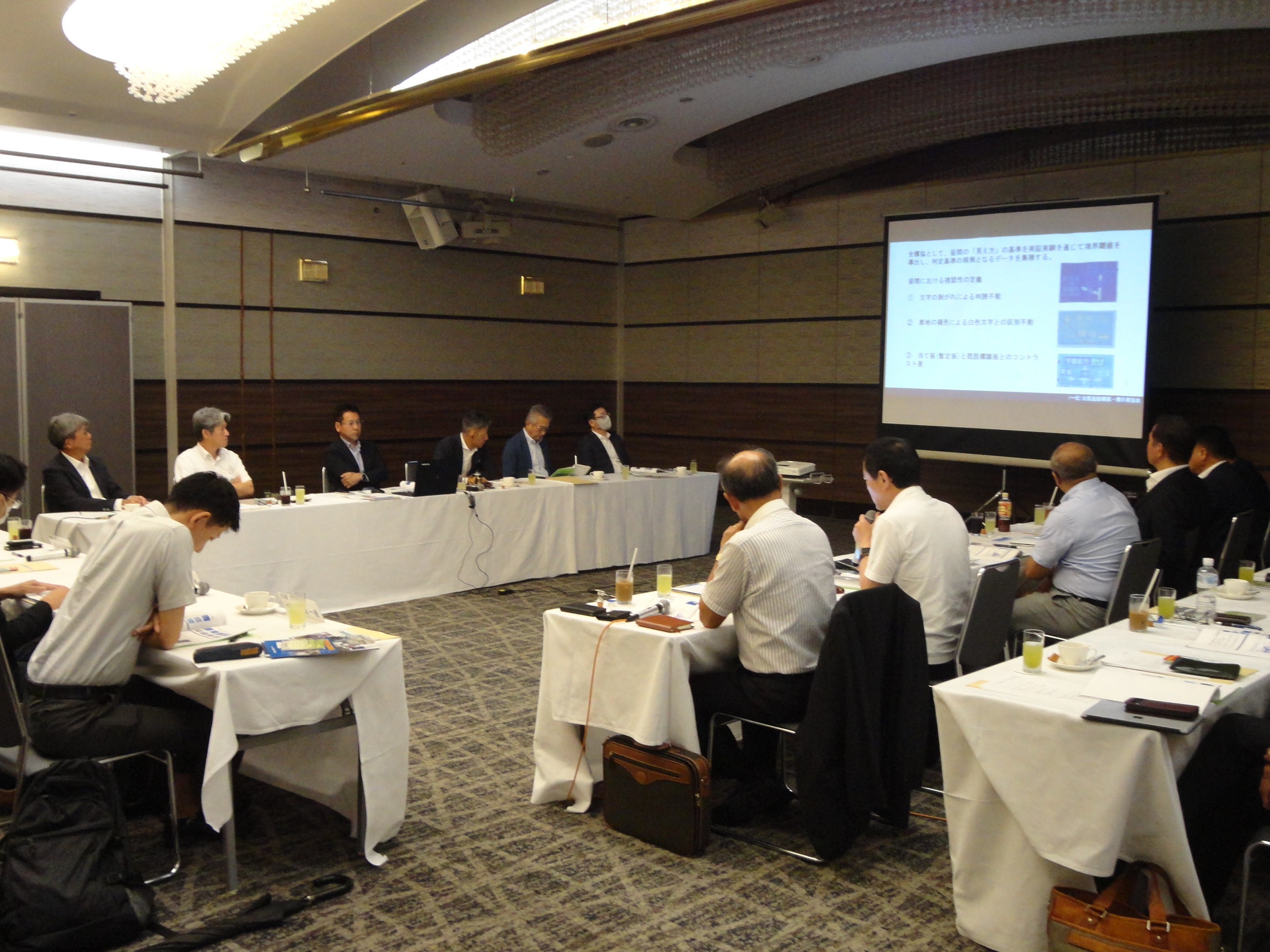 ◇ 事業概要等について 全標協中部支部より、「令和6年度の活動報告及び令和7年度の事業計画」の説明をしました。 続いて、中部地方整備局より「交通安全事業に関する最近の話題」の説明をいただきました。 はじめに、交通事故の現状として、自転車関連事故との比較や、若年層の自転車関連事故の割合について説明された。次に生活道路における今後の交通安全対策として、千葉県八街市事故を踏まえた対策の進捗状況の説明と、生活道路の画的対策と小中高生の交通事故への対応、高齢者を対象とした交通安全対策、交通島を活用した二段階横断施設について説明された。 次に、道路標識の視認性点検の試行について、直轄国道においては、点検要領案を作成し、視認性点検の試行を開始し、中部地方整備局管内では愛知県の国道155号で実施が予定されている説明と、高速道路の安全性の向上と道路交通法施行令等改正概要について説明されました。 ◇ プレゼンテーションについて 意見交換会では、毎年全標協より道路標識や交通安全施設に関わる新技術などの提案をさせていただいています。 この様な提案や協会側からの各種の標識・標示等に関わる現場の情報については、回を重ねるごとにより専門的な質問、報告が具体的に行われ、中部地方整備局から毎年ご質問やご意見をいただき、活発な意見交換の場となっています。 本年は、下記のプレゼンテーションと各県協会からの話題という構成で意見交換をいたしました。 <プレゼンテーション> 1 道路標識板の視認性・機能診断 2 道路標識点検診断士制度、登録標識・路面標示基幹技能者制度、路面標示施工技能士制度について <各県協会からの話題> 1 通学路への交通安全施設施工寄贈について(知多市) 2 多様な役割を担う交差点名標識の現状について 3 総合評価落札方式における道路標識点検診断士採用について 4 歴史ある街並みの交通安全について まず、プレゼンテーションでは道路標識板の視認性・機能診断について全標協本部より、道路標識劣化に伴う視認性と判読性プレ実験実施結果と解析について説明をしました。次に、協会として協力・実施している資格制度として、道路標識点検診断士制度、登録標識・路面標示基幹技能者、路面標示施工技能士について説明をしました。 各県協会からの話題として、愛知県協会より通学路への交通安全施設施工寄贈について、令和7年度愛知県知多市で実施した取り組み内容について説明し、静岡県協会より多様な役割を担う交差点名標識の現状について、劣化度調査の実施結果について報告しました。次に、岐阜県協会より総合評価落札方式における道路標識点検診断士採用について、入札現場の状況について説明し、三重県協会より歴史ある街並みの交通安全について、景観に配慮しながらも、費用対効果の高い交通安全対策を実施する方法や景観保護の安全対策の両立を可能にする方向性について説明しました。 ◇ 中部地方整備局から 中部支部内それぞれの県協会の発表を聞いて、標識・標示にかかるいろいろな取り組みについてよくわかりました。道路行政に対して我々の施策等にどのように繋がっていくのか、取り組むべきことが多くあると感じました。昨年度策定された国土強靱化基本計画についても、今後どのようになるのか不透明ではございますが、私どもも交通安全事業を進めていくにあたって、交通安全事業とは非常に人の生活に不可欠で大事な事業ですので、皆さまのご協力や様々な提案をいただき、我々の施策に結びつけて連携しながらやっていきたいと思います。とのお言葉をいただきました。 ◇ 最後に 今回の意見交換会は、全標協本部技術部長より道路標識板の表面劣化に伴う視認性及び判読性についての実験結果を紹介し、各県協会からの話題として交通安全施設寄贈の報告、交差点名標識劣化度調査、歴史ある街並みの交通安全の取り組み方など、今後の対策に繋がる活発な意見交換ができ、多くの成果を得ることができました。 中部地方整備局のご協力に深く感謝申し上げます。今後も継続して道路標識・標示等に関する意見交換会を開催し、交通事故の抑止や交通安全施設の整備並びに老朽化対策にも貢献して参りたいと存じます。 |